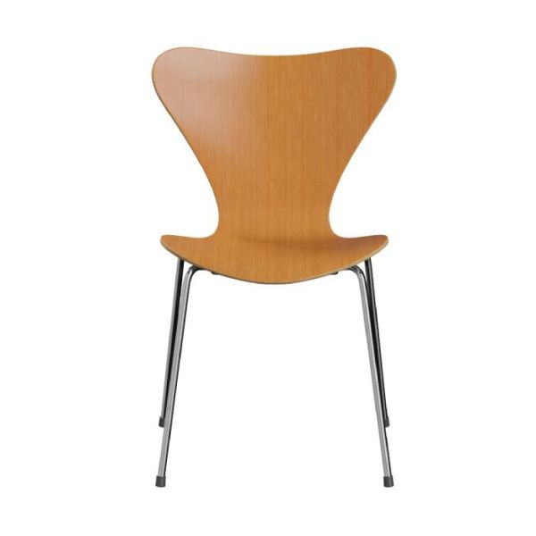 De Fritz Hansen Series 7 stoel naturel fineer is een iconisch ontwerp van Arne Jacobsen uit 1955. De zitting en rugleuning zijn uit één stuk fineerhout gemaakt, rustend op een verchroomd stalen onderstel. De stoel is stapelbaar en heeft een frame dat ook in poedercoating verkrijgbaar is in kleuren zoals Black, Brown Bronze, Silver Grey, Warm Graphite, White of Nine Grey. De zithoogte van de Series 7 Vlinderstoel is 46 centimeter en de stoel is 82 centimeter hoog, 50 centimeter breed en 52 centimeter diep.
